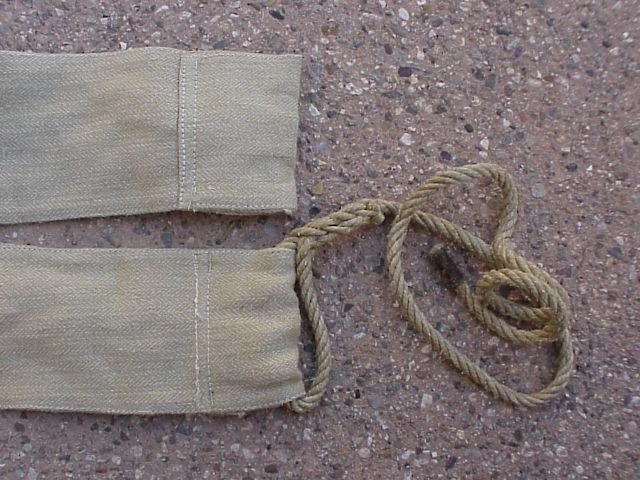 At the end of each sleeve, two more canvas loops (again three inches deep) each have six foot rope permanently spliced to circle the canvas loop.